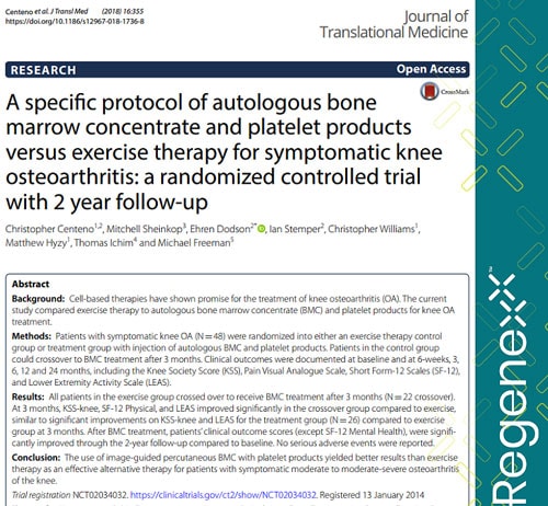 Dr. Chris Centeno and Dr. John Schultz complete a two-year, IRB-approved research study of the use of both culture-expanded and same-day stem cells to treat knee and hip arthritis and low-back degenerative disc disease.
