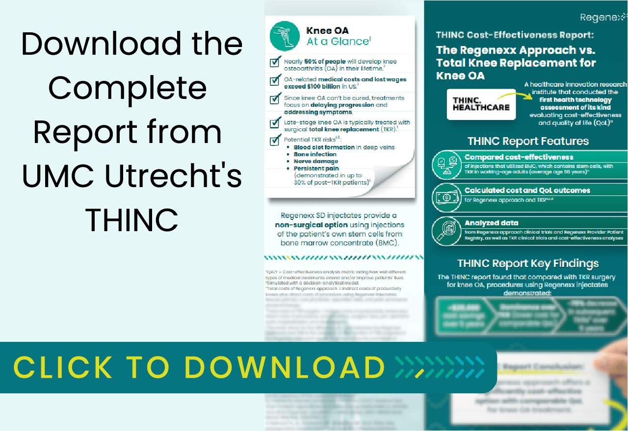 The THINC report found that compared with TKR surgery for knee OA, procedures using Regenexx injectates demonstrated: